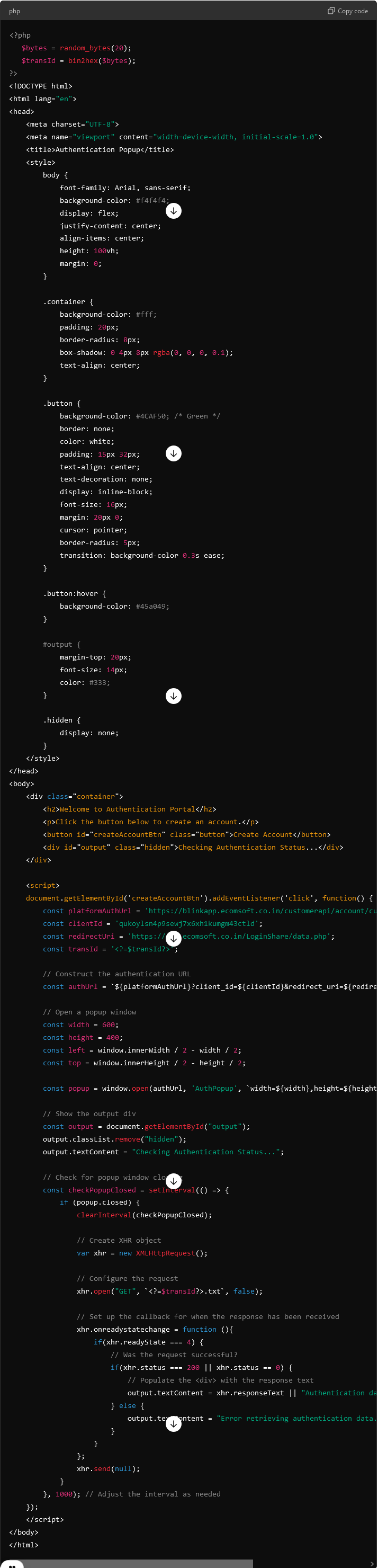 3. Example of Authentication javascript PHP